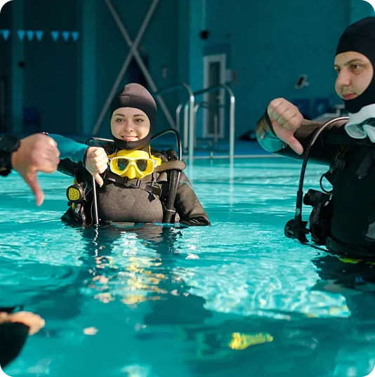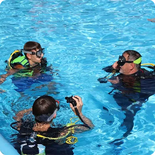 La tua formazione inizia sempre in ambiente controllato. In piscina impari a gestire l'attrezzatura, a respirare sott'acqua e a muoverti con confidenza..